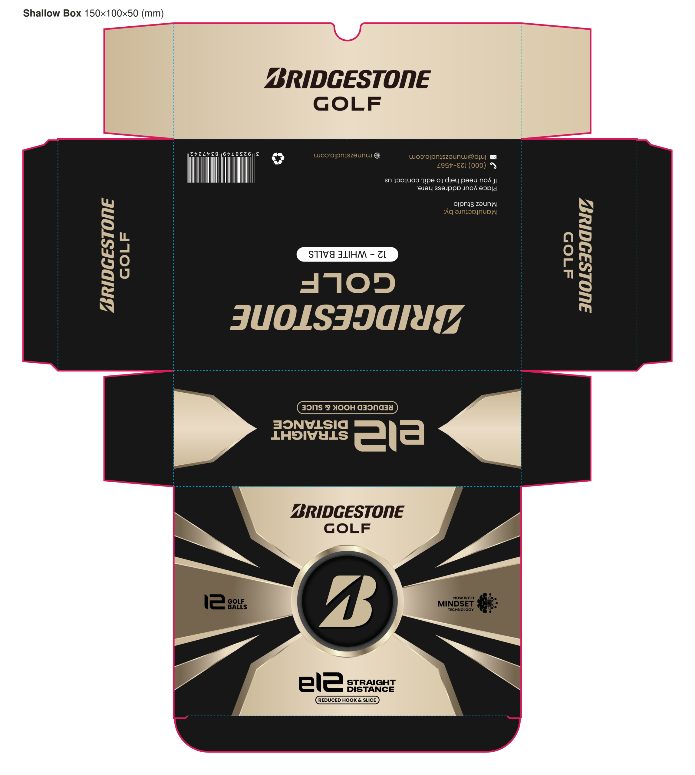 This is a Bridgestone e12 Straight golf balls box template, 100% customizable template where
